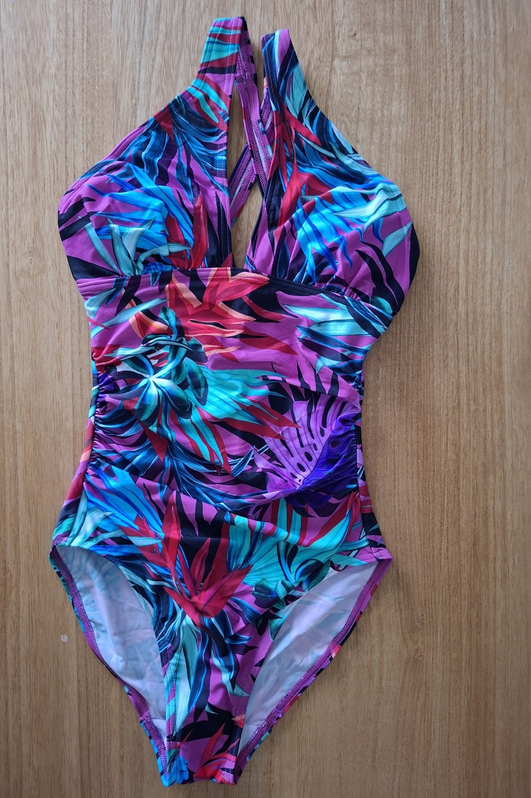 Figleaves Bahama Palm Wrap Plunge Neck Shaping Swimsuit Womens Size 8 Uk