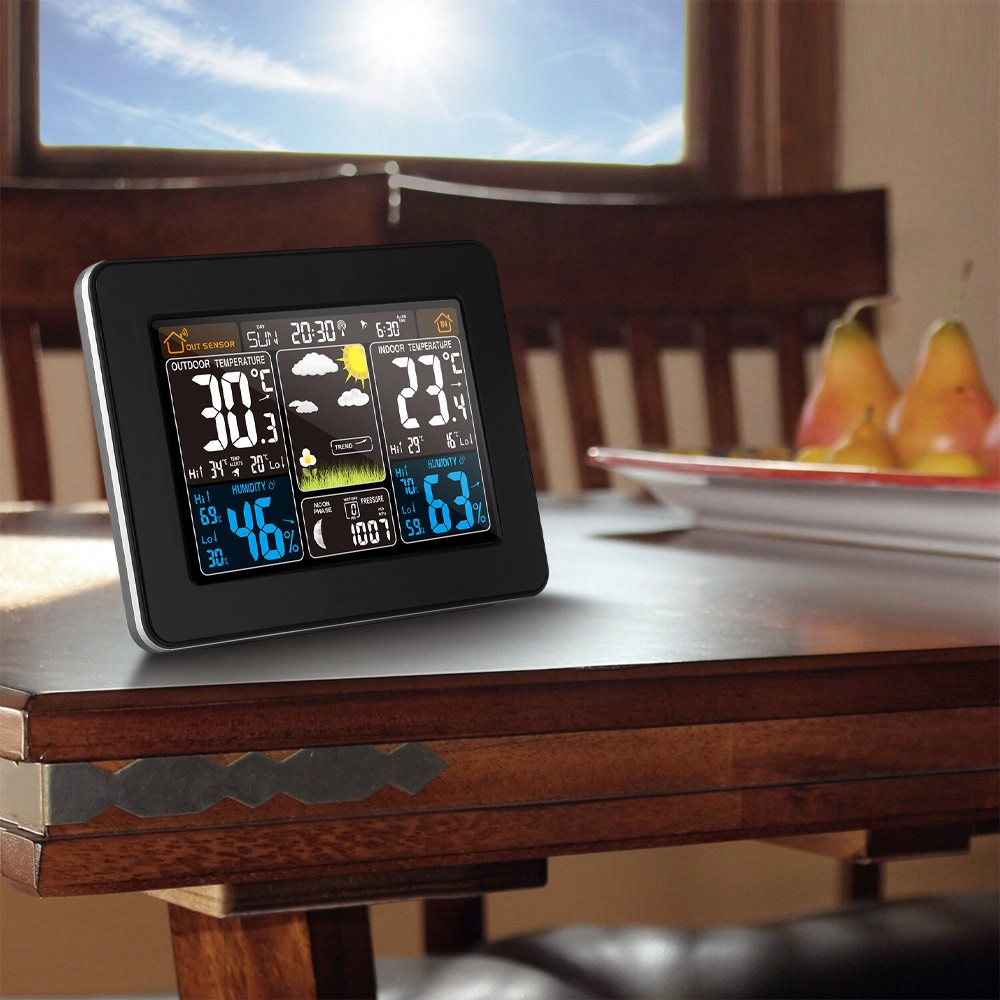 Weather Station Indoor Outdoor Wireless Digital LCD Colored Screen with Sensor