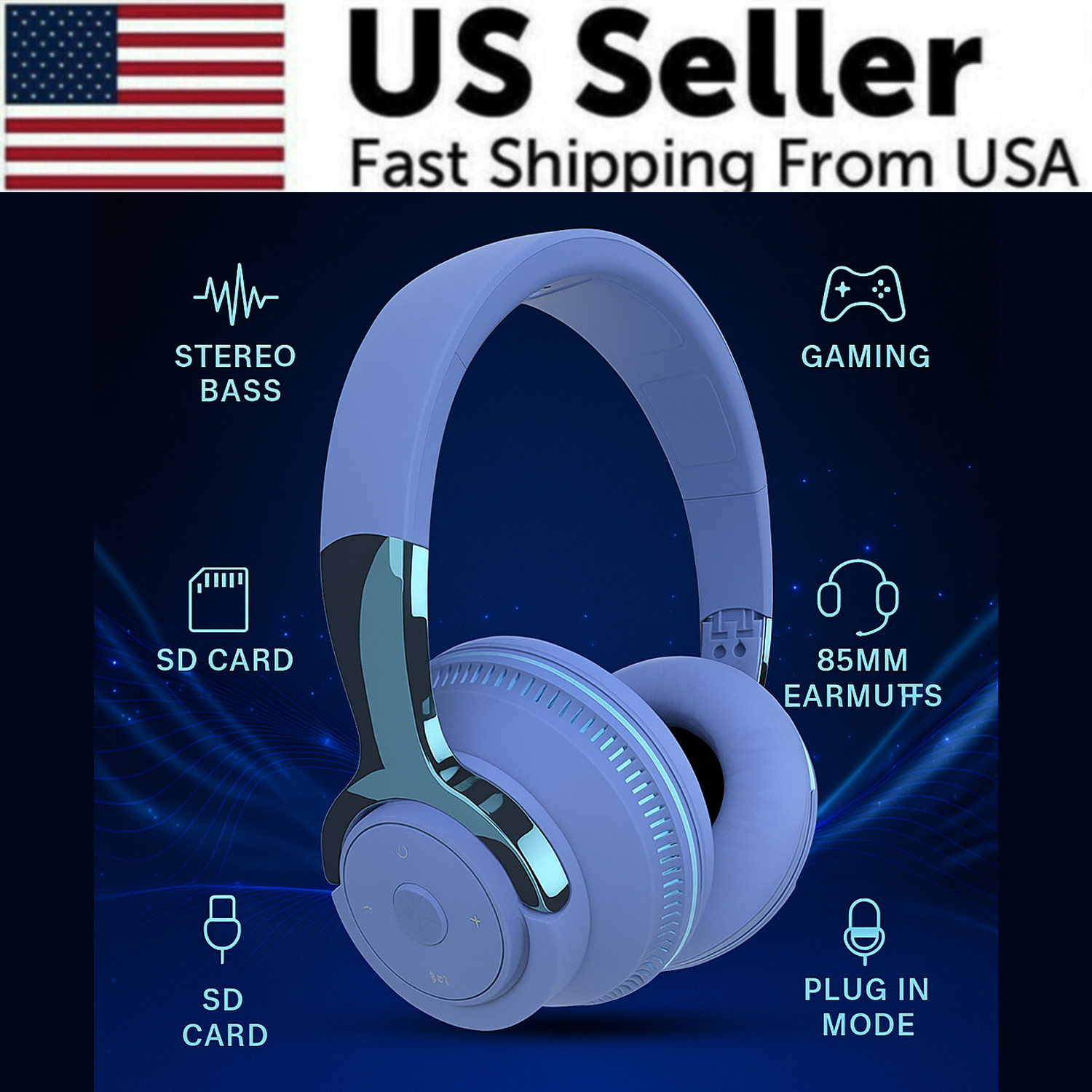 Wireless Bluetooth 5.1 Headphones Over Ear LED Headset Stereo Noise Cancelling