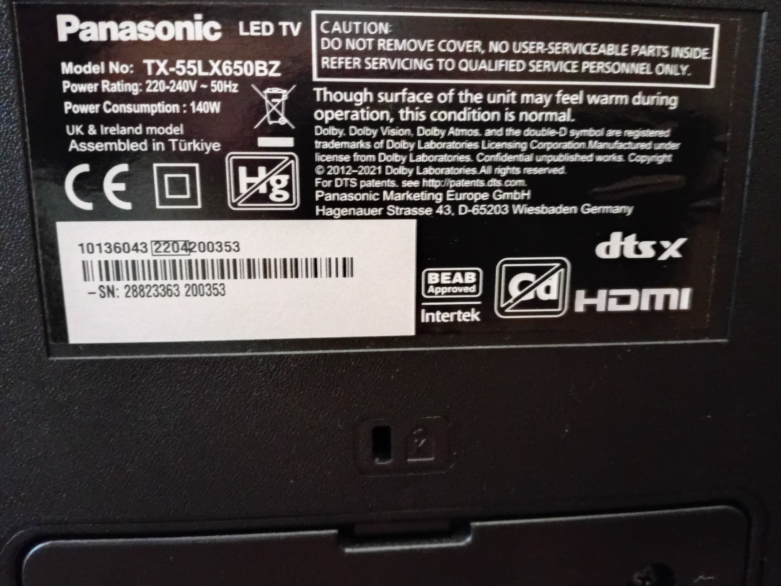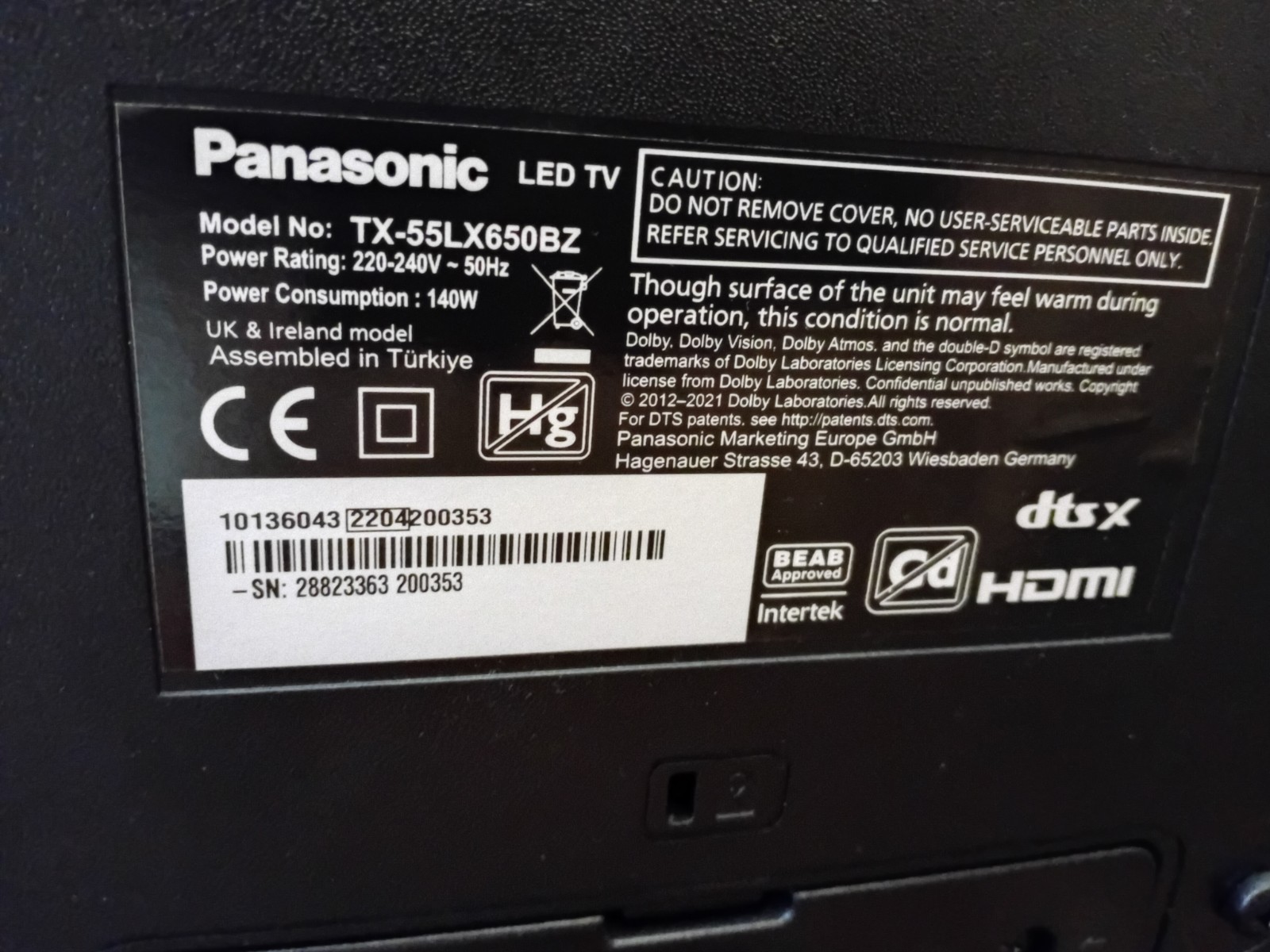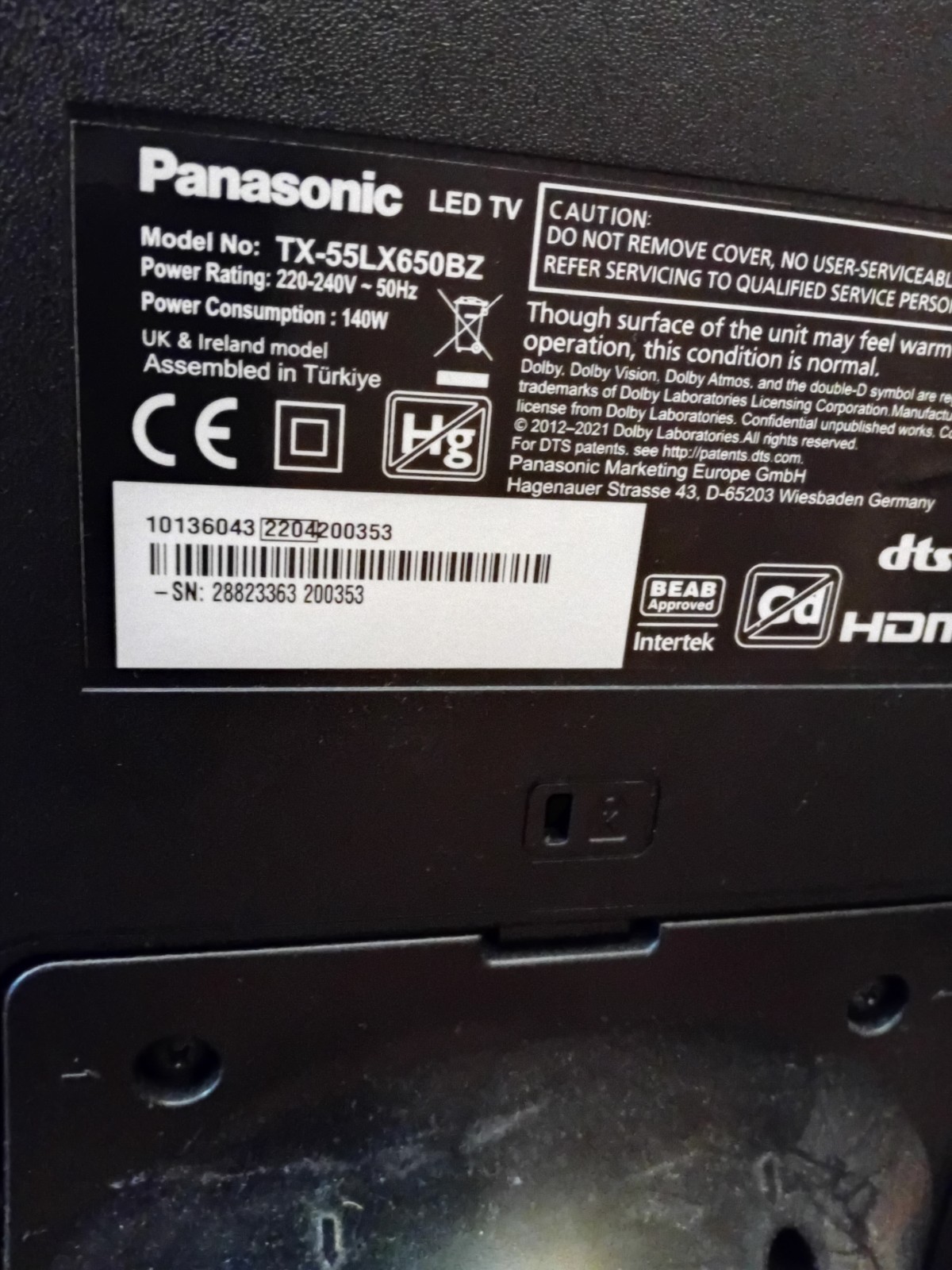 Panasonic TX-55LX650BZ 55" 4K LED Smart TV With Stand And Original Remote