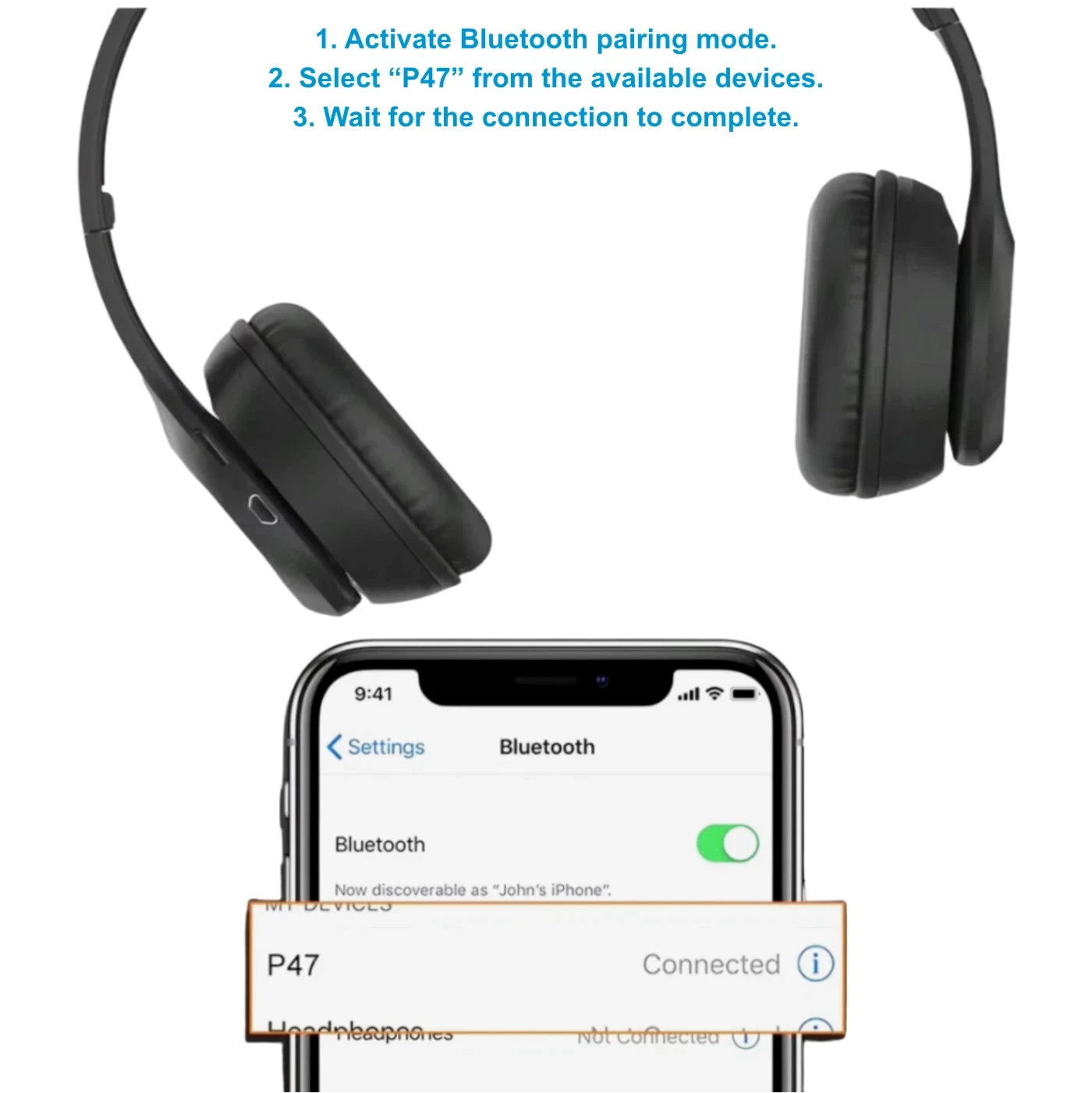 🎧 P47 Super Bass TWS Wireless Headphones – Noise Cancelling | Over-Ear | UK Dispatch 🎧. The oval-shaped design ensures a secure fit around the ear cap, adapting naturally to your ear contour. 🔇 Noise Cancelling: Passive isolation design reduces ambient distractions.