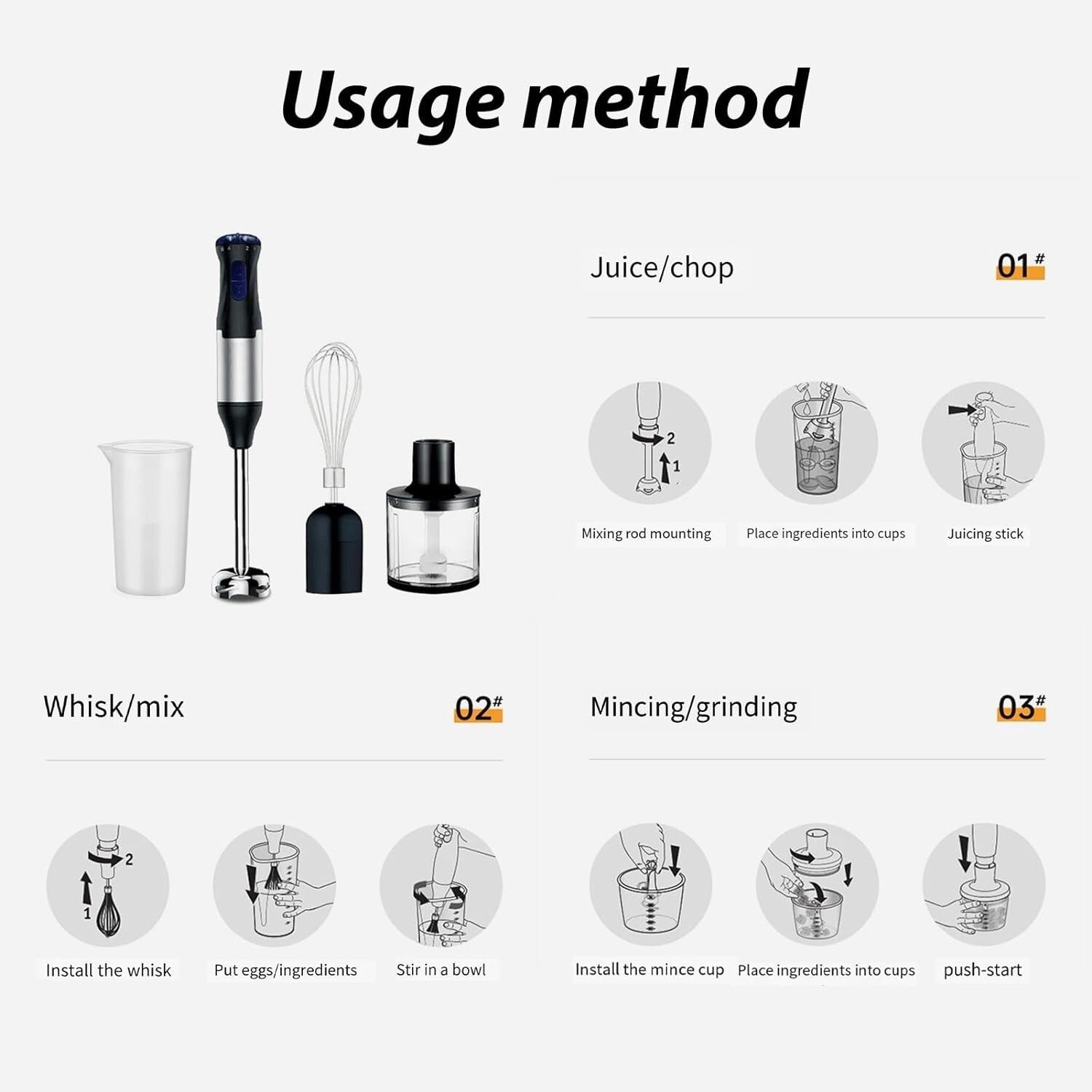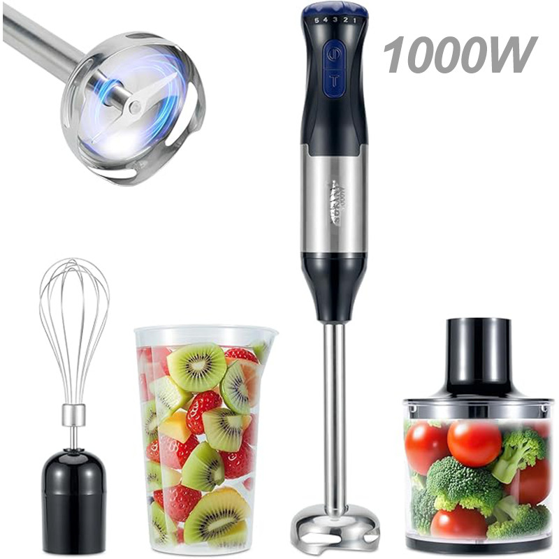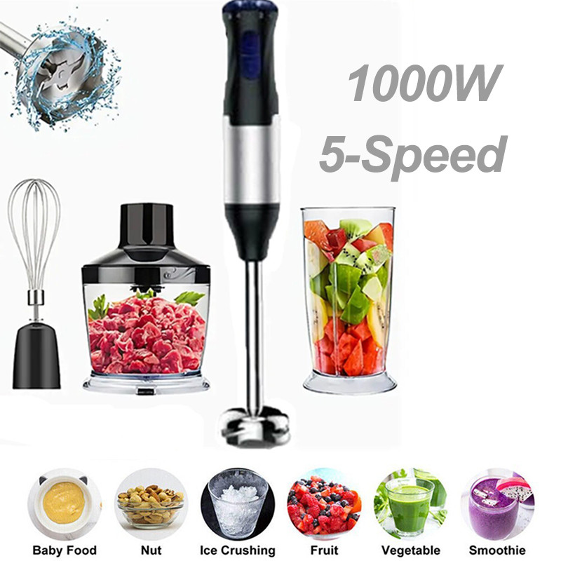 1000W 4 IN 1 Electric Hand Immersion Blender Stick Handheld Blender 5-Speed SET