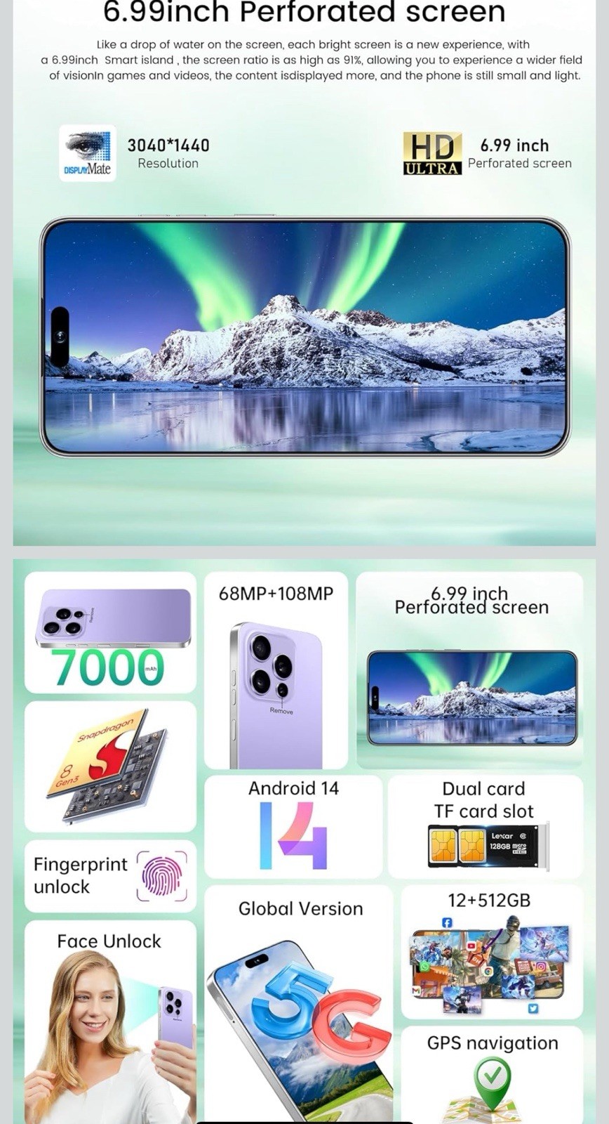 Bluetooth Enabled, Camera, Color Screen, Facial Recognition, Fingerprint Sensor, Front Camera, GPS, Internet Connectivity, MMS (Multimedia Messaging), Web, Email