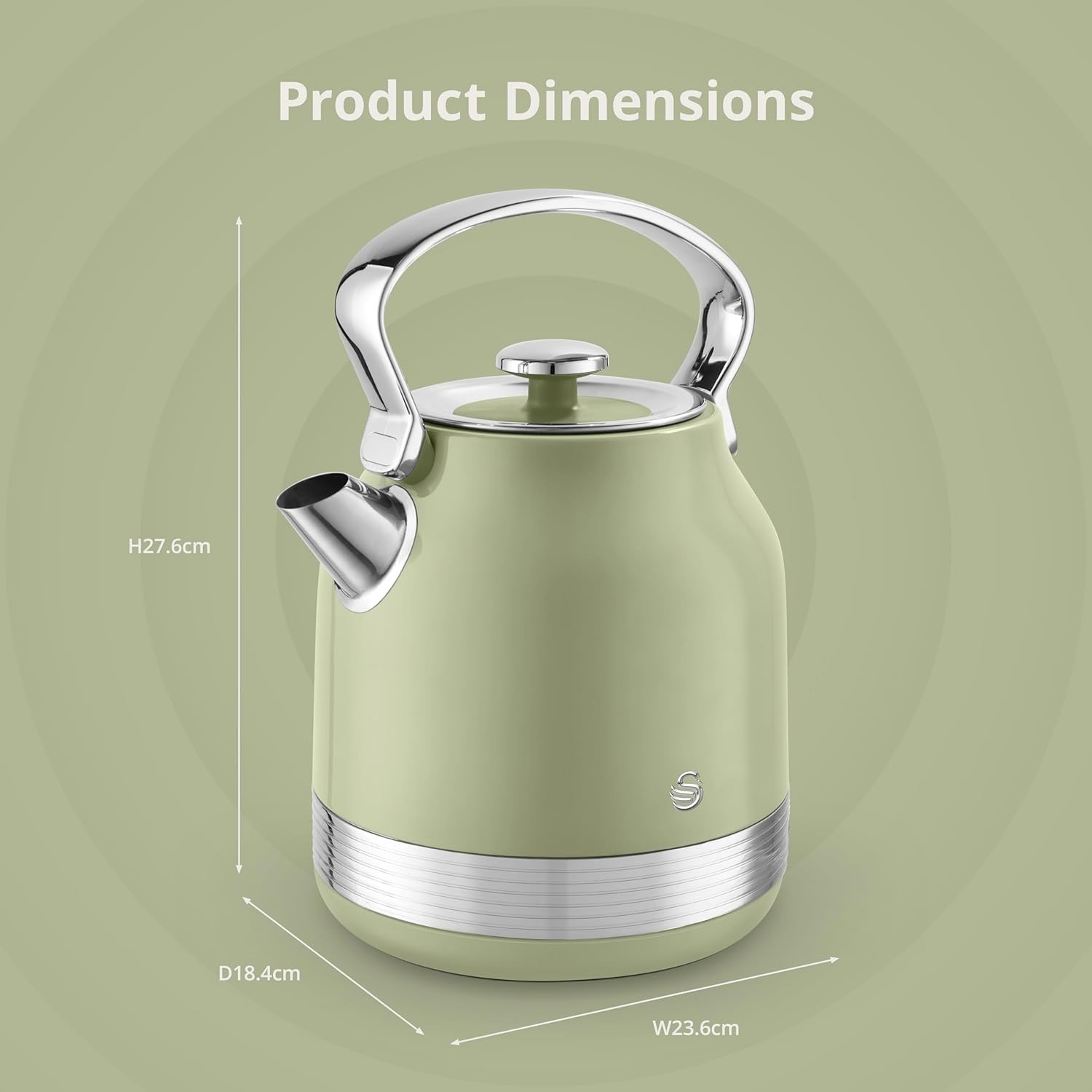 1 × Swan Retro Revive Traditional Stovetop Design Electric Kettle – Retro Green (SK14631GRN). Complete retro kitchen set – stovetop-style electric kettle, 2 slice toaster & Tea/Coffee/Sugar canisters in matching retro green.