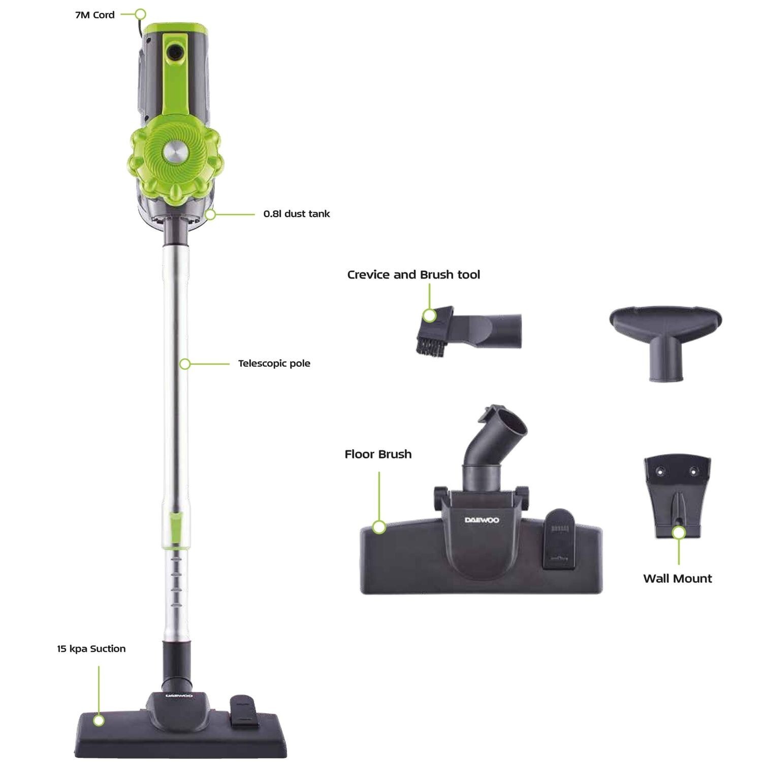 Daewoo Cyclone Essential Corded Stick & Handheld Vacuum Cleaner Bagless Compact