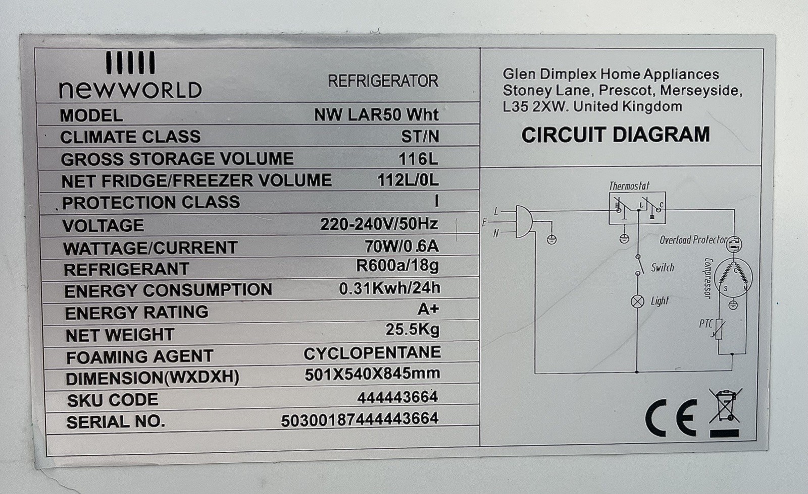 The New World NW LAR50 Fridge is a freestanding undercounter fridge with a single door design, standing at. The sleek white colour adds a modern touch to any kitchen, while the quiet operation ensures minimal noise disturbance.